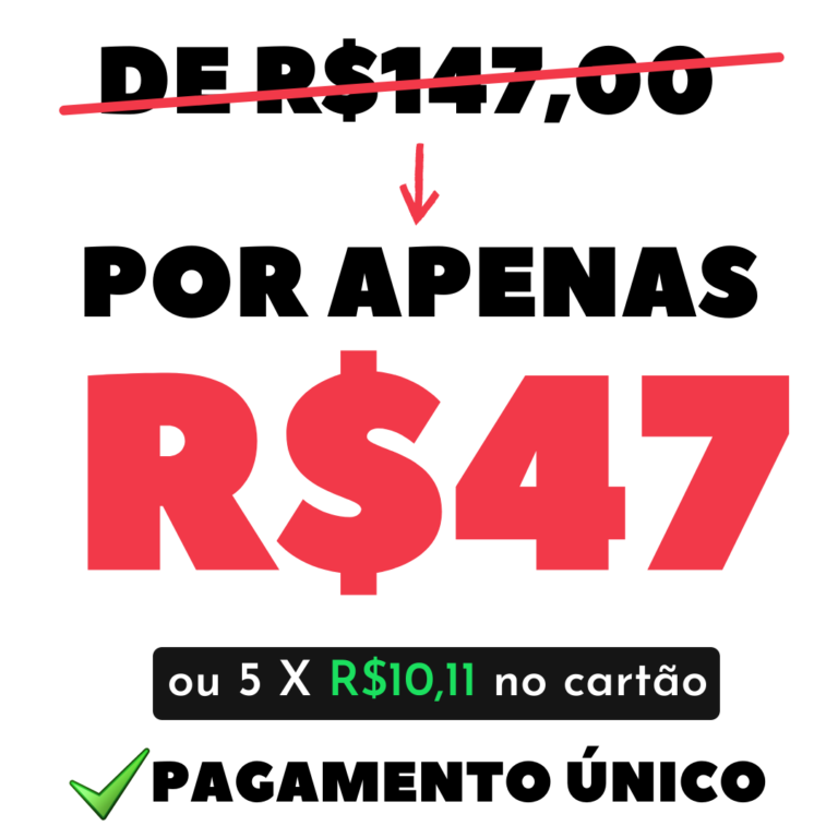 Clique aqui e entre agora no curso – de R$147,00 por R$47,00. Essa promoção acabará logo!