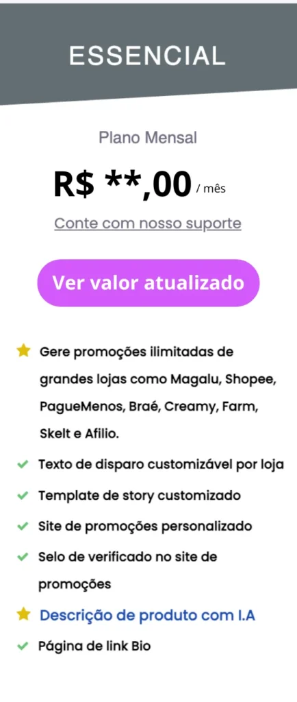 Na prática, ele funciona como um gerador inteligente de promoções, que transforma links de produtos em:
